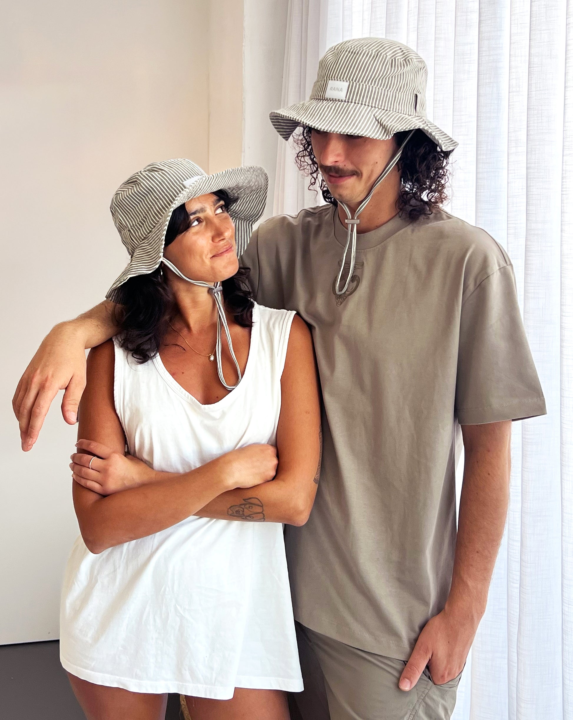כובע פסים מבד קאנווס טבעי, מתאים ללוק מוקפד וגם יום יומי, משדרג כל הופעה.
